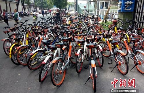 資料圖:江西南昌一共享單車(chē)停放點(diǎn)。 中新社記者 劉占昆 攝