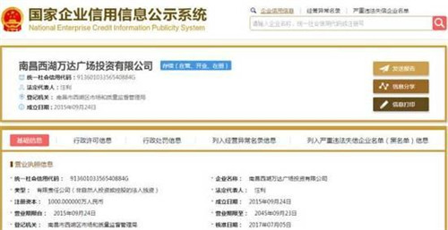 據(jù)萬(wàn)達(dá)集團(tuán)信息,今年6月23日,南昌西湖萬(wàn)達(dá)廣場(chǎng)開業(yè)。隨后,7月5日,該廣場(chǎng)的經(jīng)營(yíng)范圍、投資人、法定代表人就出現(xiàn)變動(dòng)。