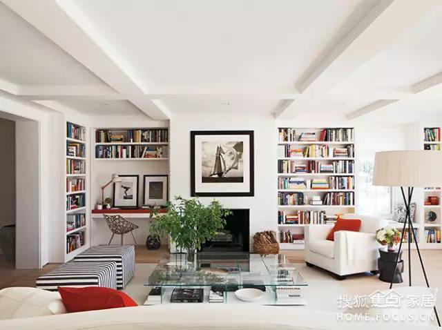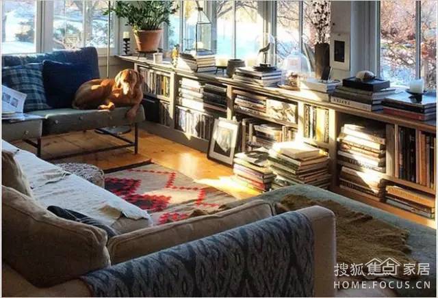 如果客廳有大落地窗,直接把客廳的沙發(fā)面向窗戶擺放。在窗戶前面擺放低矮的書架,看書看累了,就欣賞一下遠(yuǎn)方的風(fēng)景。