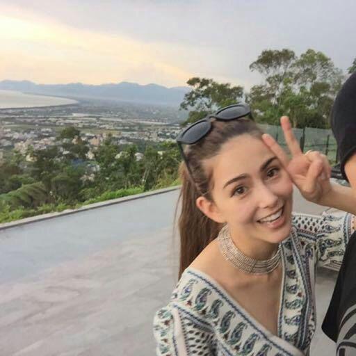 昆凌舉著剪刀手