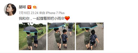 鳳凰網(wǎng)娛樂訊 7月10日胡可在微博曬出兩兒子的照片。照片中,安吉為弟弟小魚兒撐著傘,兄弟倆有說有笑地走在雨中,邁步回頭神同步,背影溫馨又可愛。