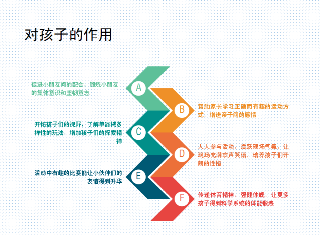 “趣味親子運(yùn)動(dòng)趴”根據(jù)孩子年齡不同設(shè)置指標(biāo),由家長(zhǎng)和孩子共同參與、相互協(xié)作完成,是一次從耐力到動(dòng)手能力、反應(yīng)力到創(chuàng)造力,速度與平衡全面考量的一系列親子活動(dòng),從“歡樂親子跑”到“趣味體能大沖關(guān)”,不但提高幼兒的活動(dòng)技能,開拓孩子們的視野,增加孩子們的探索精神,增強(qiáng)少年兒童的身體素質(zhì)的,又寓教于樂,有利于孩子們身心健康成長(zhǎng),同時(shí)讓家長(zhǎng)們也了解正確而有趣的運(yùn)動(dòng)方式,更好的增進(jìn)父母與孩子間感情。