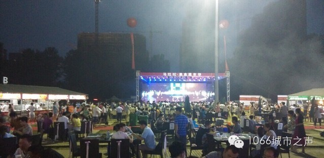 中原美食嘉年華的開幕標(biāo)志著集美食、運(yùn)動、娛樂等元素的品牌夜市正式投入運(yùn)營??墒沁@里不僅僅是吃飯的地兒,你看那邊幾桌的白領(lǐng),白色襯衫都沒來得及脫下就已經(jīng)搶先坐下(請注意,他們是扭著頭看完舞臺表演的,沒起身,沒起身?。?,“下班后,跟同事來這兒說說話,放松下挺好的?!逼渲幸晃粠浶』镬t腆的說到。