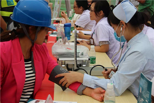 到場的醫(yī)生細心地為前來咨詢就診的群眾解答問題,為患有疾病的患者進行義診,并建議患者養(yǎng)成良好的健康生活習慣,以增強工人們的健康意識。