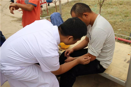 當天前來求診的工友絡繹不絕,專家們耐心解答工友疑問,傳授醫(yī)療保健知識,指導群眾平常要注意身體保健,養(yǎng)成良好的飲食習慣和生活習慣,甚至還為頸椎病患者、腰椎病患者進行即時針灸。義診從上午10點開始,一直開展到中午12點多,就診人群才慢慢散去,專家們早已餓得饑腸轆轆。專家們精湛的醫(yī)療技術,耐心細致的服務,受到建筑工人們的一致好評。