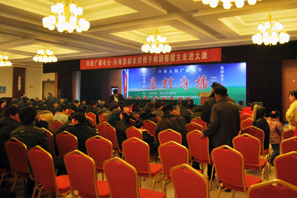 為凈化農(nóng)資市場(chǎng)、保護(hù)農(nóng)民利益、服務(wù)農(nóng)業(yè)生產(chǎn),河南電臺(tái)農(nóng)村廣播成功舉辦——“3.15放心農(nóng)資下鄉(xiāng)進(jìn)村活動(dòng)”。3月14日清晨冒雨趕赴河南省周口市太康縣,邀請(qǐng)省會(huì)相關(guān)職能部門領(lǐng)導(dǎo)現(xiàn)場(chǎng)宣傳科學(xué)種田知識(shí),現(xiàn)場(chǎng)抽獎(jiǎng)為當(dāng)?shù)剞r(nóng)民發(fā)放放心農(nóng)資。并邀請(qǐng)河南勤耕農(nóng)資等企業(yè)、文化界相關(guān)人士帶去精彩的互動(dòng)與節(jié)目演出。戲曲、魔術(shù)、雜技、變臉、抽獎(jiǎng)等穿插互動(dòng)!精彩紛呈!高潮迭起!當(dāng)天從周口各地聞?dòng)嵜坝贲s來(lái)的農(nóng)民把活動(dòng)現(xiàn)場(chǎng)擠得水泄不通,鄉(xiāng)親們臉上洋溢著滿意的笑容,雖然天氣驟冷,但現(xiàn)場(chǎng)互動(dòng)把氣氛一次次推向了高潮!在歡聲笑語(yǔ)中,大家不僅對(duì)今年3.15的主題“消費(fèi)與服務(wù)”有了更深層次的理解,而且對(duì)農(nóng)村廣播的“心連心”惠農(nóng)活動(dòng)更加喜愛(ài)并充滿期待!