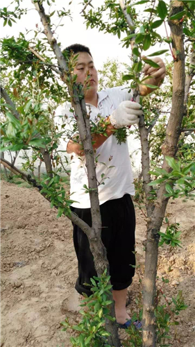農業(yè)生產過程的管理,對石榴的品控尤為關鍵。既然是農民就要會種地,種石榴。要學習扦插樹苗、修剪果樹、施肥、翻地。父輩是靠經驗,小綱他們照著做,慢慢發(fā)現(xiàn)經驗有時也會錯,每個人說法不一,這就要靠自己一點點去實踐,他們也會把自己摸索的技術通過萬氏石榴合作社的微信公眾號分享給更多人。