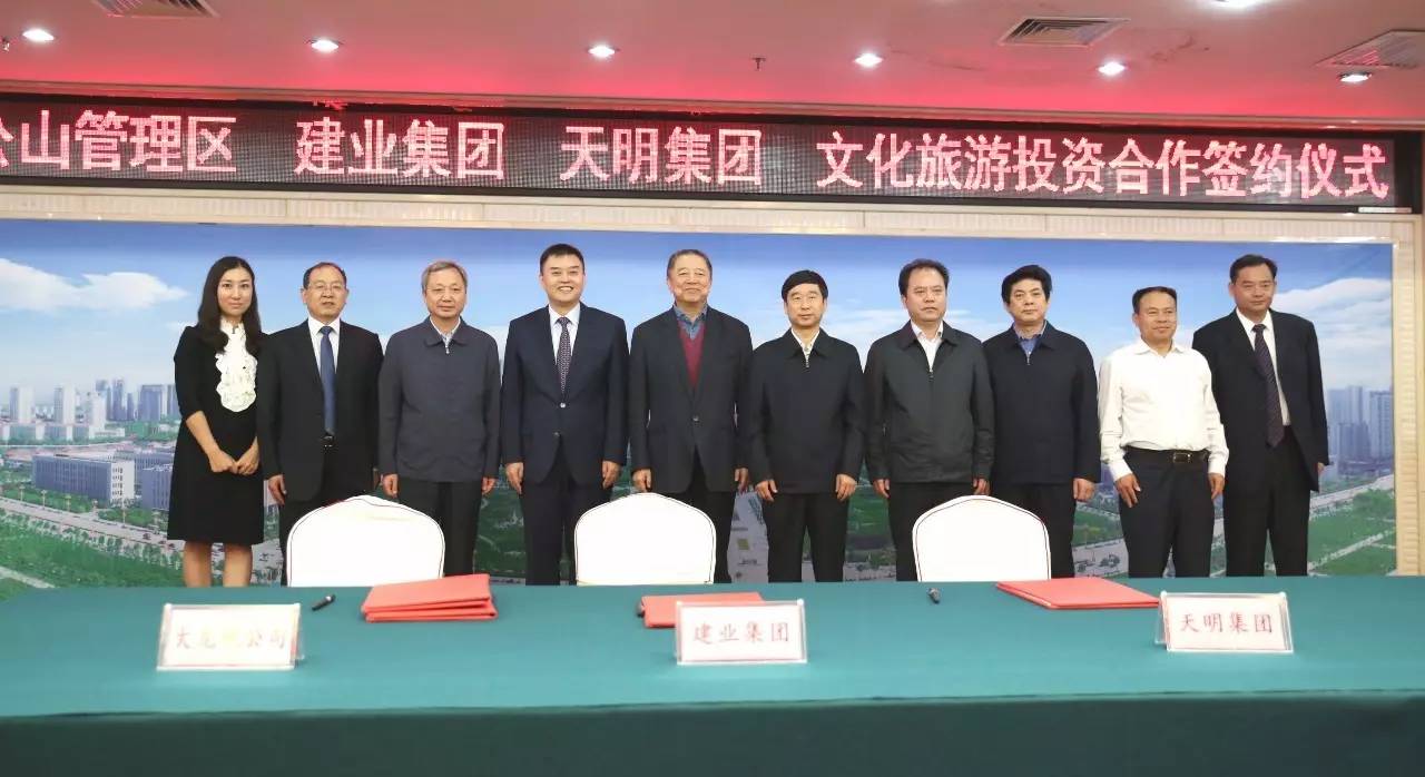 2017年9月2日上午,雞公山管理區(qū)與建業(yè)集團、天明集團在信陽市舉行文化旅游投資會暨簽約儀式。此次簽約項目總面積287平方公里,初步構(gòu)思“一園十三景”,計劃總投資300~500億元。未來,兩家企業(yè)將攜手打造文化旅游項目,助力信陽雞公山脫貧攻堅、建設(shè)美麗鄉(xiāng)村。信陽市市委書記喬新江、市長尚朝陽、建業(yè)集團董事長胡葆森、建業(yè)集團聯(lián)席董事長劉衛(wèi)星、建業(yè)集團副總裁陳劍、天明集團董事長姜明、天明城建集團總裁郭穎、雞公山管委會黨委書記、主任趙安虎等領(lǐng)導(dǎo)出席簽約儀式。
