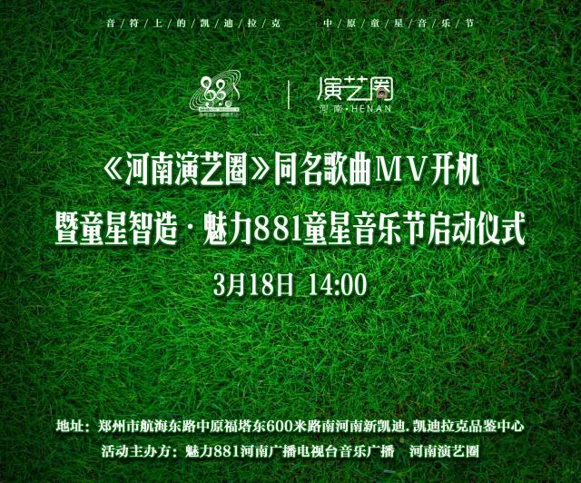 童星智造·魅力881童星音樂節(jié)啟動儀式暨《河南演藝圈》同名歌曲mv開機將于3月18日下午2點河南新凱迪·凱迪拉克品鑒中心舉行,本次活動由魅力881河南廣播電視臺音樂廣播和河南演藝圈主辦,讓我們一起為本土童星音樂藝術加油打CALL ?。?!