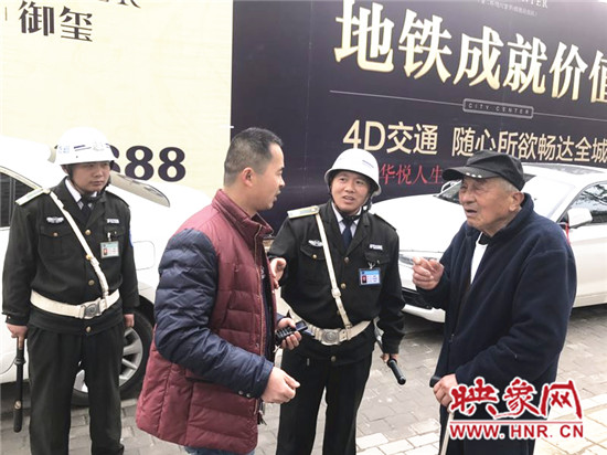 據(jù)了解,侯老先生今年87歲,老家是山東聊城人,今年春節(jié)前來鄭州的女兒家探親至今。5日一大早,老人從航海路秦嶺路口附近茜城花園的女兒家去帝湖廣場(chǎng)趕早市,買點(diǎn)水果打算到汝河路桐柏路口的外甥女家看看,沒想到一出早市門就走迷路了。正徘徊路邊著急犯難時(shí),遇到了巡防隊(duì)員。