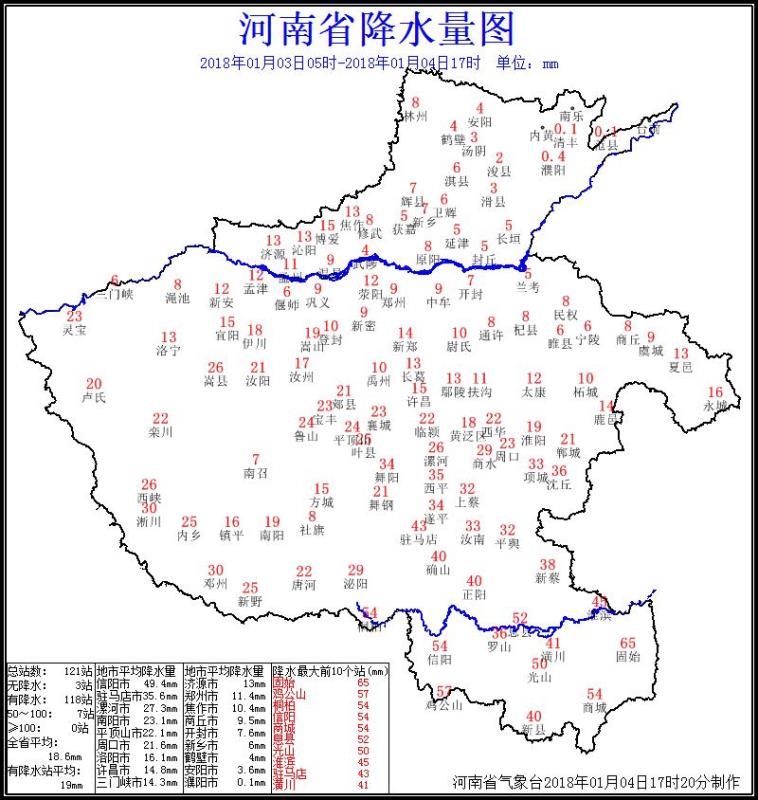 3-4日,河南自西向東出現(xiàn)明顯降雪過程,除豫東北部分縣市外,全省其它地市均出現(xiàn)大到暴雪,中南部大部分地區(qū)出現(xiàn)20毫米以上大暴雪,其中信陽、駐馬店和南陽部分縣市出現(xiàn)30毫米以上特大暴雪。全省平均降雪量18毫米,本次降雪具有降雪量大、積雪深厚、多站日降雪量突破1月歷史極值的特點。