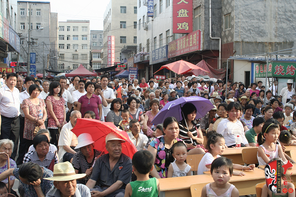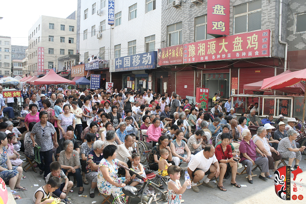 本次活動是在河南進行的首場活動,當天非常炎熱,但是大家看戲的熱情絲毫沒有減弱。街道里擠滿了前來看戲的居民,大家一邊鼓掌一邊揮動著扇子,別有一番風味。整個活動持續(xù)兩個半小時,隨著演出的進行,觀眾的熱情不斷高漲,人群中時而掌聲如雷,時而捧腹大笑?;顒咏Y束之后,觀眾依然不肯離場,當地熱情的戲曲愛好者紛紛上臺,繼續(xù)著自娛自樂的活動。