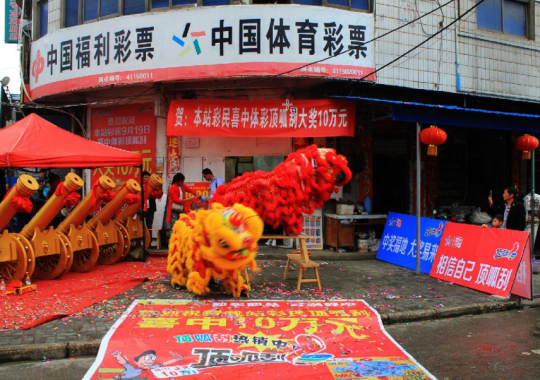 當(dāng)天下午,雖然下過小雨,但銷售網(wǎng)點(diǎn)門前仍然是人滿為患,好不熱鬧。聽說銷售點(diǎn)中了大獎,很多附近的彩民都來圍觀“中獎福地”,業(yè)主張女士還專門請來了兩組舞獅隊進(jìn)行即興表演,一時間現(xiàn)場氣氛達(dá)到頂點(diǎn),據(jù)張女士說,自從她的銷售站出了大獎,慕名而來“沾喜氣”的彩民很多,大家都是試試手氣隨手刮上一兩張頂呱刮彩票。