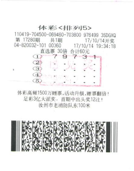 汝州彩民喜獲排列五300萬元