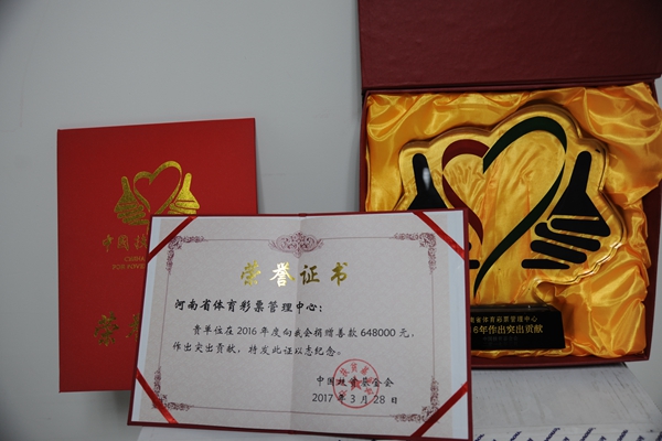 河南省體育彩票管理中心榮獲突出貢獻獎
