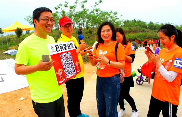 河南體彩管理中心信陽分中心在賽道的4公里處設(shè)置了“河南體彩黨支部第十四小組黨員服務(wù)站”,布置了休息區(qū)域,免費(fèi)提供溫開水為大家取用。還以概率游戲的大樂透玩法為主要宣傳內(nèi)容,張貼了宣傳品,現(xiàn)場為大家介紹大樂透的玩法知識。崎嶇的山路上,沿路擺放了體彩頂呱刮的銷售區(qū),由網(wǎng)點(diǎn)業(yè)主自發(fā)開展“掃碼加好友”送即開彩票的線上拉新活動,另外,信陽分中心還為群眾登山愛好者免費(fèi)提供了簡易的登山杖,確保大家的登山安全。