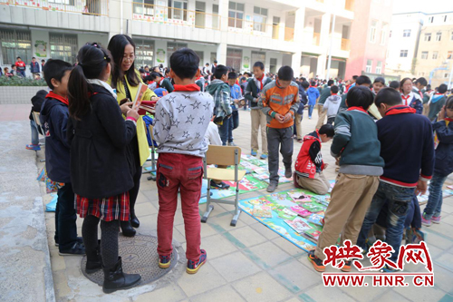 映象網(wǎng)教育頻道訊(記者 李照華 通訊員 張俊杰)為培養(yǎng)孩子們節(jié)約資源、愛護環(huán)境的意識和良好的行為習慣,讓學生們體驗“公平買賣”和“勞動快樂”,結(jié)識更多的朋友,本著“你的多余,我的需要”理念,通過舊書循環(huán)利用,以“書換書”和“錢買書”的方式,推廣循環(huán)經(jīng)濟、生態(tài)環(huán)保的思想。經(jīng)開區(qū)外國語小學經(jīng)過前期精心的準備,于2015年11月4日下午,順利組織開展了主題為“悅分享 越快樂”的圖書“跳蚤市場”活動,讓學生把家中閑置的圖書在跳蚤市場活動中與同學等價交換或錢物交換。