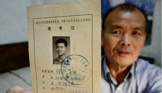 1978年夏天,迎來恢復(fù)高考后的第二次考試,考試結(jié)束后,甘福保跑到高招辦買了試卷回來自己做,從此后,他就一發(fā)不可收拾,每年高考都會(huì)買一份試卷回來,一直堅(jiān)持到2016年的高考。圖為甘福保展示當(dāng)年高考時(shí)的準(zhǔn)考證。