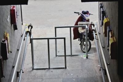 樓洞口安上了鐵柵欄,阻止了電動車的通行。