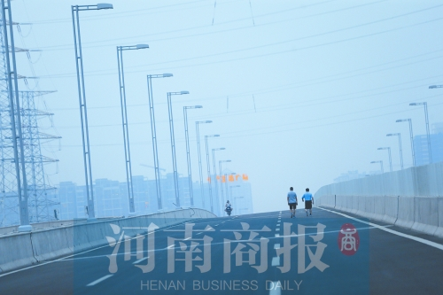 前天晚上7時30分,鄭州市南三環(huán)與京廣路交叉口向南500米路西,幾名市民沿著高架橋匝道向二層走去。高架橋二層橋面西側,人們三五成群,大人們邊走邊聊天,小孩兒則在車道上嬉笑玩耍。東側,一名女士大步快速地向北走,“不刮風不下雨,沒事兒就來這鍛煉?!贝送?,還有30多名市民正在跳廣場舞。
