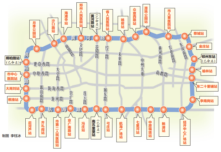 鄭州地鐵1號線、5號線42個(gè)站點(diǎn)名稱確定