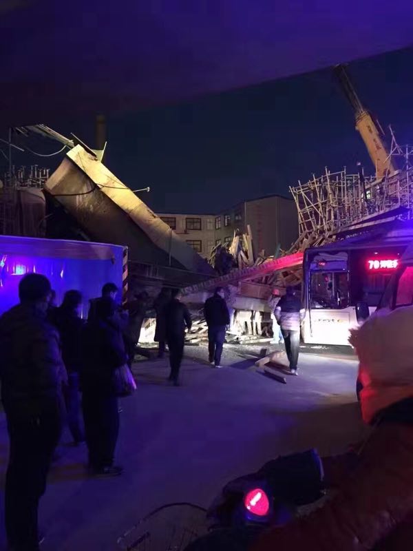 映象網(wǎng)快訊(記者 阮海峰 駱瓊 王邵怡 何葉 燕子丹)1月12日20時50分許,鄭州農(nóng)業(yè)路沙口路高架橋一處施工中的橋面發(fā)生坍塌事故,路經(jīng)此處的79路公交車車頭部位遭遇撞擊受損,事故發(fā)生后公安、消防、醫(yī)療及公交等多部門已趕赴現(xiàn)場進(jìn)行處置。