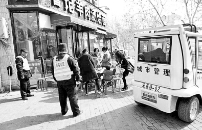飯店占道經(jīng)營 鄭州城管待食客吃完才催收攤