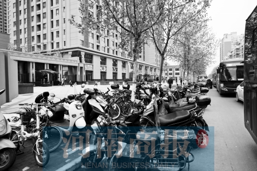 家住鄭州經(jīng)三路與廣電南路交叉口附近嘉辰麗景苑小區(qū)的李先生一直把電動車停放在小區(qū)大門外的人行道上。原因是小區(qū)非機動車停放點兒沒建好。而停放點建成后,物業(yè)要收費。李先生等業(yè)主因此事與物業(yè)產(chǎn)生了分歧。