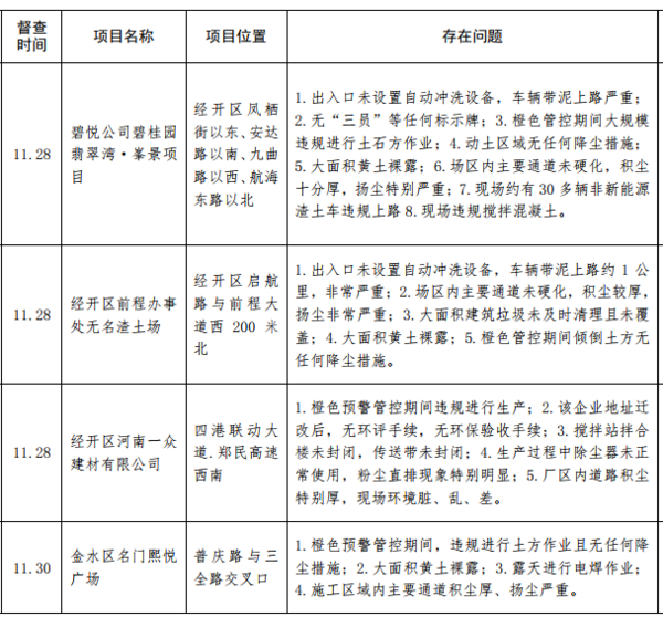 12月7日,記者從鄭州市環(huán)境污染防治攻堅辦了解到,11 月 27 日至 12 月 3 日,鄭州市環(huán)境污染防治督導(dǎo)組重點(diǎn)對全市"封土行動"方案、橙色預(yù)警管控措施落實(shí)和 30天沖刺行動方案落實(shí)情況進(jìn)行督導(dǎo)檢查。