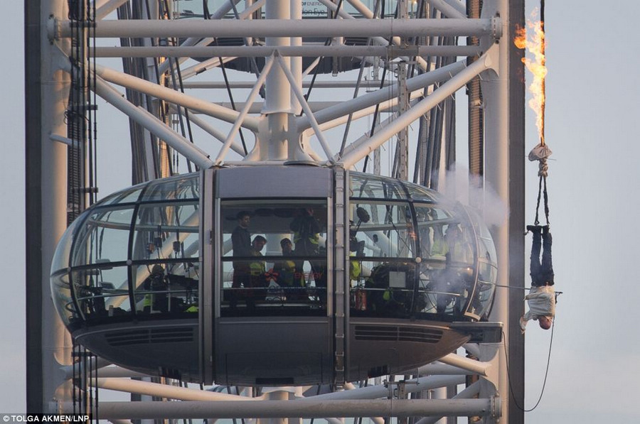 喜愛魔術(shù)的人一定不會對逃生術(shù)感到陌生。然而,在幾十米的高空表演玩命逃生術(shù)的恐怕并不多見。據(jù)英國《每日郵報》3月5日報道,“倫敦眼”摩天輪上5日就上演了一幕玩命逃生術(shù):表演者將自己倒掛在摩天輪上,僅用了幾分鐘就擺脫了燃燒的繩子成功逃生。