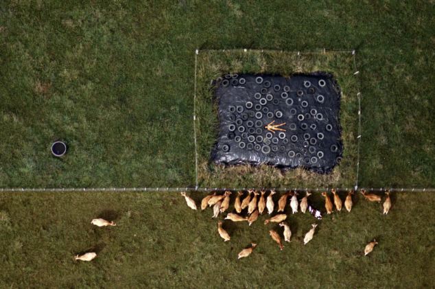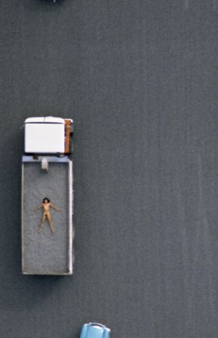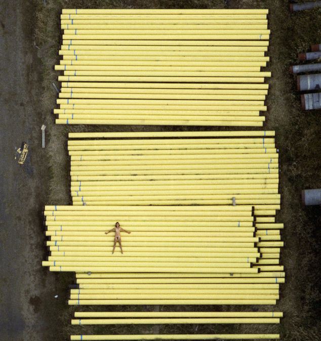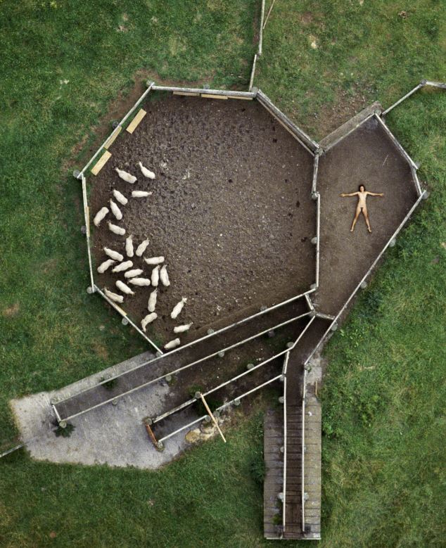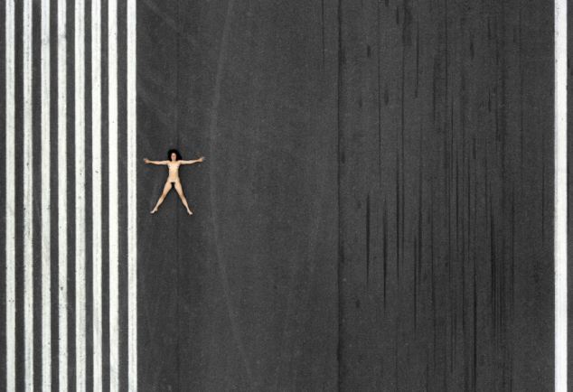 據(jù)悉,1984-1987年間,約翰利用直升機(jī)航拍了一組妻子的裸體照片。妻子在農(nóng)田、養(yǎng)豬場(chǎng)、機(jī)場(chǎng)跑道、海邊、鐵軌及移動(dòng)的汽車上一絲不掛,舒展著四肢。他說:“在那些地點(diǎn)拍攝裸體照片,可以反襯出人類在大千世界的渺小和微不足道?!?/p>