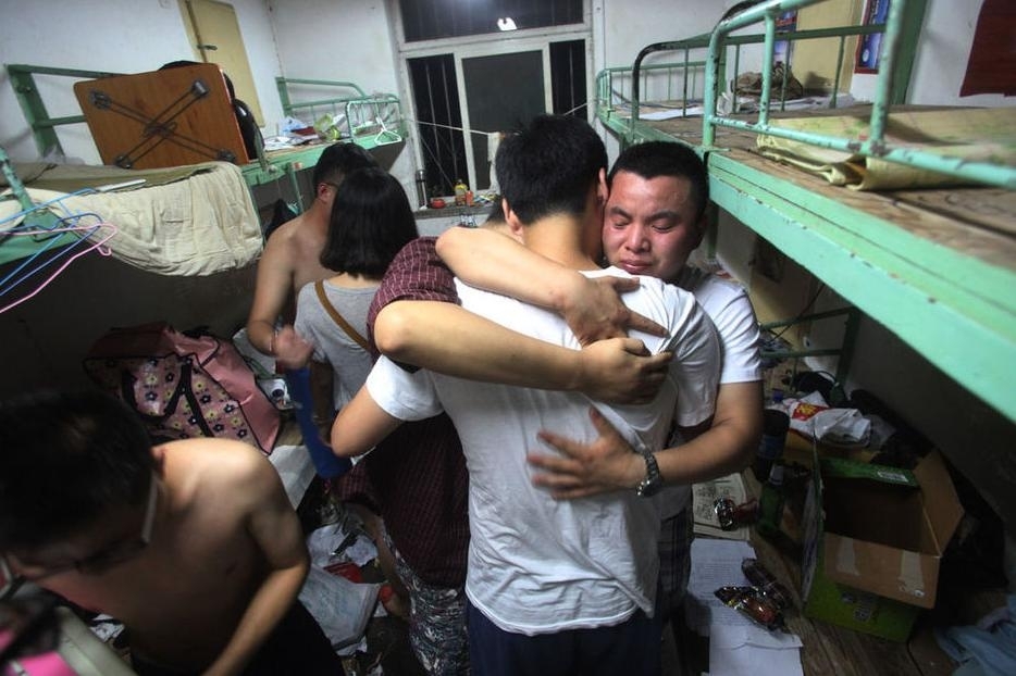 2013年6月24日,山東濟(jì)南,在山東師范大學(xué)宿舍樓里,舍友們緊緊抱在一起不舍離去。因?yàn)檫@是他們大學(xué)生生涯的最后一夜。當(dāng)晚,大學(xué)生們無(wú)法入眠,酒杯聲、哭聲交織在整個(gè)宿舍樓。第二天起床就要背著行囊啟程了,此時(shí)此刻發(fā)現(xiàn)校園生活是多么珍貴,四年大學(xué)時(shí)光轉(zhuǎn)瞬即逝,不得不各奔東西,像蒲公英一樣飄向社會(huì)每個(gè)角落,尋求屬于自己的新舞臺(tái)。