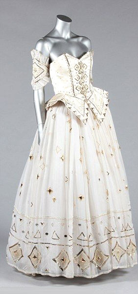 據(jù)悉,該款禮服正是出自王妃曾經(jīng)的婚紗設(shè)計(jì)者伊曼紐爾夫婦(David&Elizabeth Emanuel)之手。該禮服在1986年時(shí)被推出,是一條飾滿(mǎn)了金片、水晶和珠串的精美華服。由于王妃曾在較短時(shí)間內(nèi)三次穿著該禮服出席公眾場(chǎng)合,因此世人皆認(rèn)定這是王妃最鐘愛(ài)的服裝。