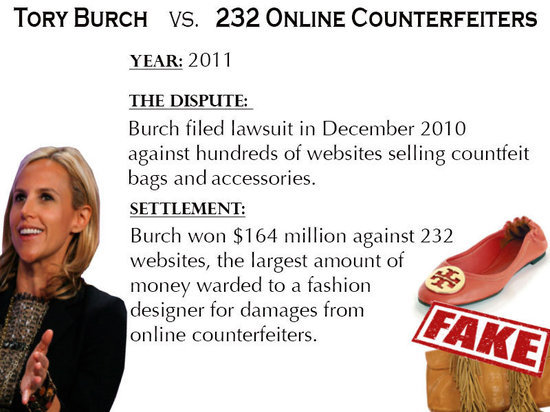 糾紛:2010年11月,Tory Burch指控232家在線商店銷售假冒Tory Burch的包包和配件