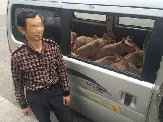 老板為省錢面包車塞20只小豬崽一路亂嚎