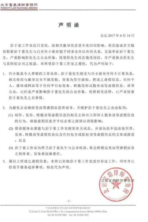 彭于晏方發(fā)聲明:與白百合絕無(wú)不正常關(guān)系