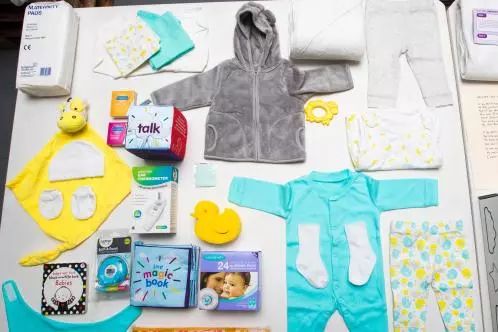 嬰兒箱里的嬰兒睡袋、背心、褲子、手套和帽子都是中國制造,甚至連圍嘴、浴巾、指甲銼和溫度計等一些物件也來自中國。盒子里只有毯子和毛巾是由歐洲制造的,產(chǎn)婦衛(wèi)生巾來自英國諾丁漢郡,而一本精裝書由倫敦出版。