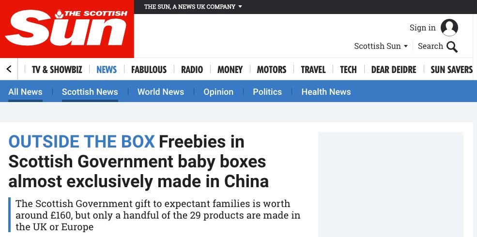 現(xiàn)在看來這個想法要被改變了!連英國蘇格蘭政府贈予新生兒家庭的禮物,大部分都來自中國制造。