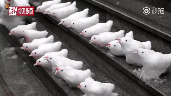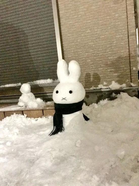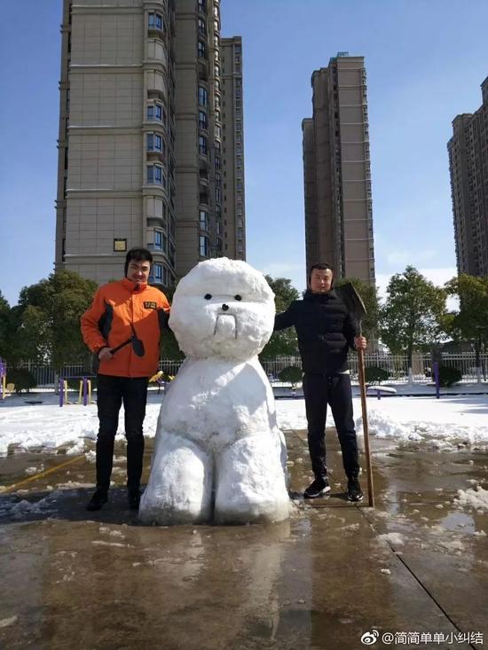 保安下雪后堆了個"動物園" 萌得心都化了