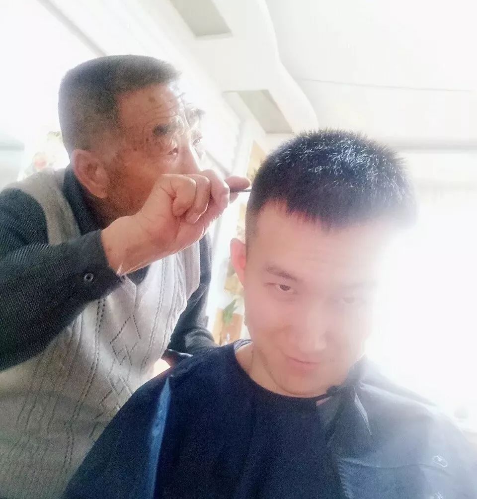 我對奶奶說:“沒關(guān)系奶奶,他給自己剪都能剪這么好,這兩天理發(fā)店人又多還漲價,爺爺,你剪吧!”