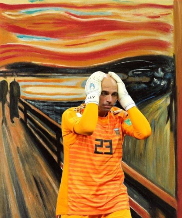 而阿根廷呢?大腳解圍掄空的奧塔門迪、本方禁區(qū)玩火的塔利亞菲科、還有莫名在門前挑傳失誤,給對(duì)手送上大禮的門將卡巴列羅……