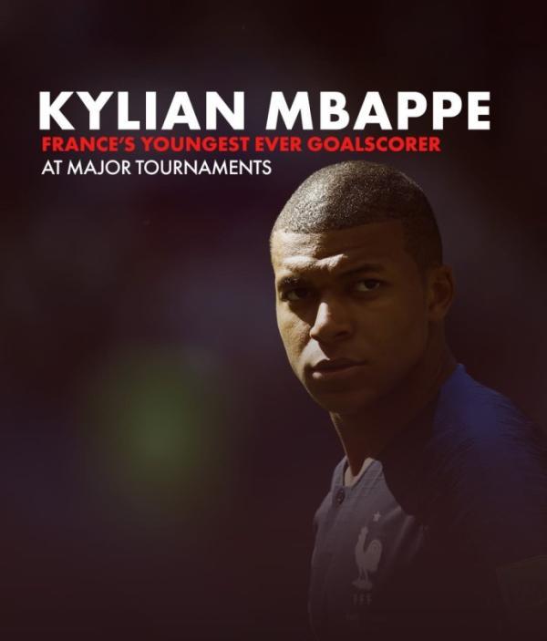 本場(chǎng)比賽,打入唯一進(jìn)球的姆巴佩成為了耀眼的明星。年僅19歲零180天的他也打破了法國(guó)隊(duì)歷史上的世界杯最年輕進(jìn)球隊(duì)員紀(jì)錄。此前,該記錄是由特雷澤蓋所保持(20歲零246天)。