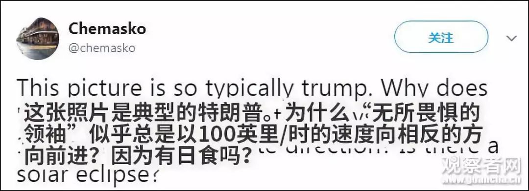 就像此前在G7峰會上默克爾發(fā)的一張構圖絕妙的照片,不同的視角會給人呈現(xiàn)完全不同的畫面,這張照片也一樣。
