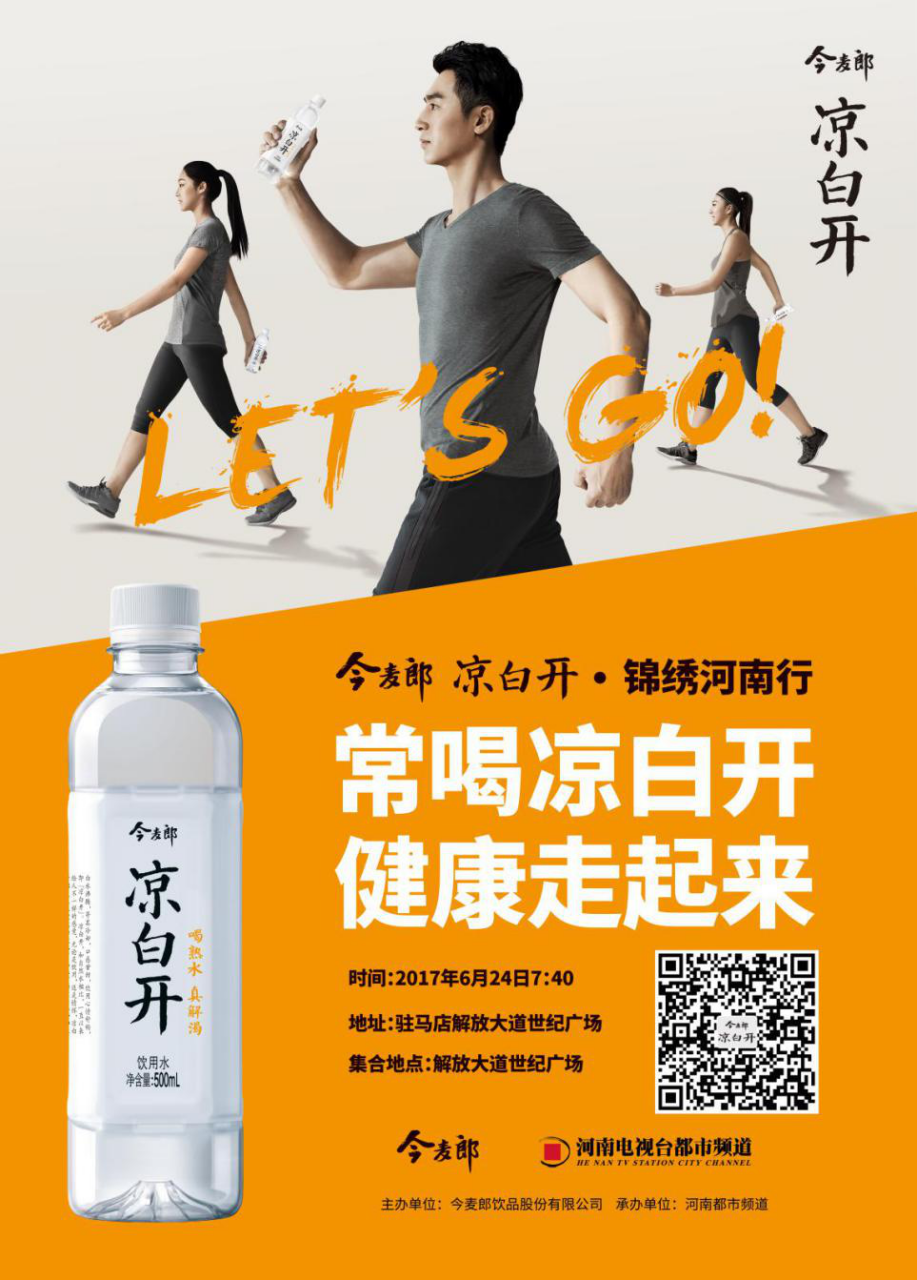 本次活動(dòng)由河南電視臺(tái)都市頻道、今麥郎飲品股份有限公司主辦,計(jì)劃走遍開封,許昌,平頂山,洛陽(yáng),鄭州等河南的10座文化名城,“喝熟水 真解渴”6月24,我們?cè)谔斓刂爸小瘪v馬店等你一起“錦繡河南行”。