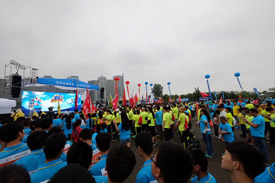 經過了半夜的狂風暴雨后,早上8點,鄭東新區(qū)的空氣格外清新!雖然活動9點開始,但此時,cbd文化廣場已經聚集了好幾千名參與者,他們有的是熱衷于環(huán)保的市民,有的是健身、跑步的愛好者,也有的學校、單位集體組織了方陣,提前趕到現場參加活動。