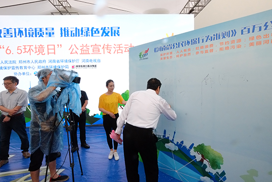 十一位領導共同啟動了“《河南省公民環(huán)保行為準則》百萬公民電子簽名墻”正式上線儀式,并在《河南省公民環(huán)保行為準則》百萬公民簽名墻上,簽下自己的名字,成為首批在“百萬公民簽名墻”上簽字的環(huán)保志愿者!