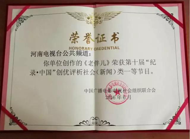 7月6日至9日,第十屆“紀(jì)錄·中國(guó)”創(chuàng)優(yōu)評(píng)析活動(dòng)在廈門舉行,河南電視臺(tái)公共頻道創(chuàng)作的紀(jì)錄片《老伴兒》,榮獲社會(huì)類一等獎(jiǎng)。