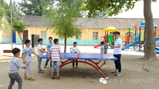 “聯(lián)歡會”結(jié)束后,省實驗中學(xué)的大朋友和陳菜園小學(xué)的小朋友又開始做游戲……大朋友們分別教小朋友們畫畫、唱歌、做壽司,我們的鵬哥也開始教小朋友們打乒乓球。