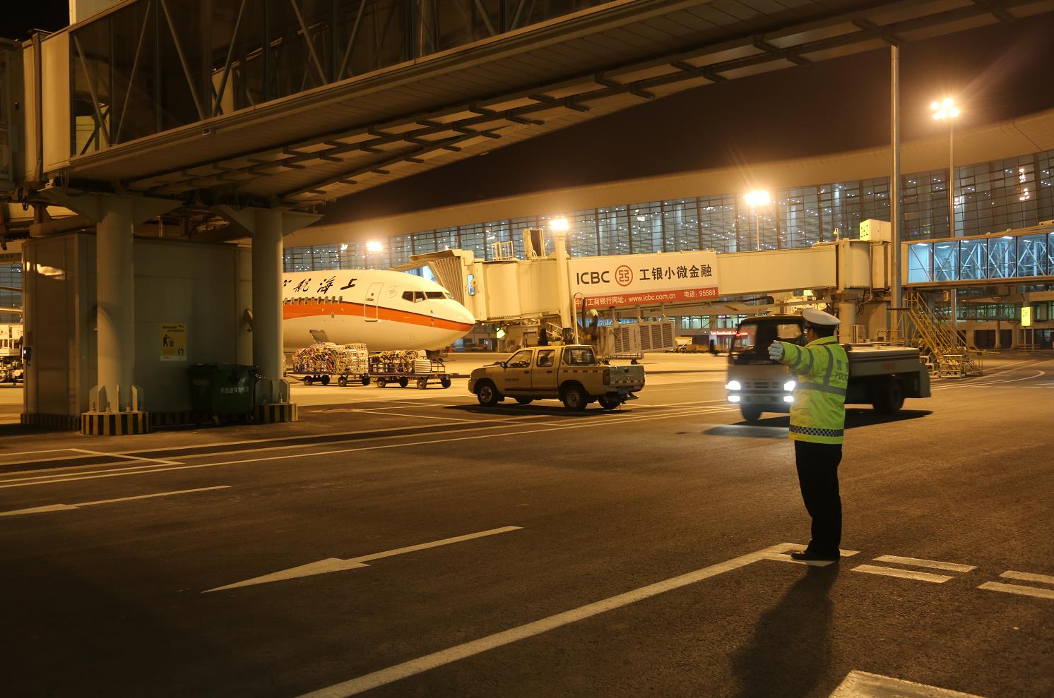 鄭州機(jī)場(chǎng)緊急啟動(dòng)除雪保障預(yù)案,機(jī)場(chǎng)各崗位徹夜未眠連續(xù)工作,對(duì)飛機(jī)跑道、滑行道、停機(jī)坪和對(duì)機(jī)場(chǎng)地面交通道路進(jìn)行撒鹽、掃雪等一系列除冰雪保障工作,以保障廣大旅客安全出行。只見(jiàn)大的除冰機(jī)上寫(xiě)著:雪不凈冰不化我們不休息!