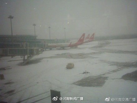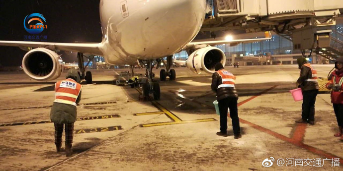 目前,鄭州機(jī)場(chǎng)暫時(shí)符合起降標(biāo)準(zhǔn),但是運(yùn)行效率受到影響,因持續(xù)降雪,飛機(jī) 積冰現(xiàn)象嚴(yán)重,目前已有四個(gè)航班出港,七個(gè)航班進(jìn)港,航班延誤10多個(gè)。